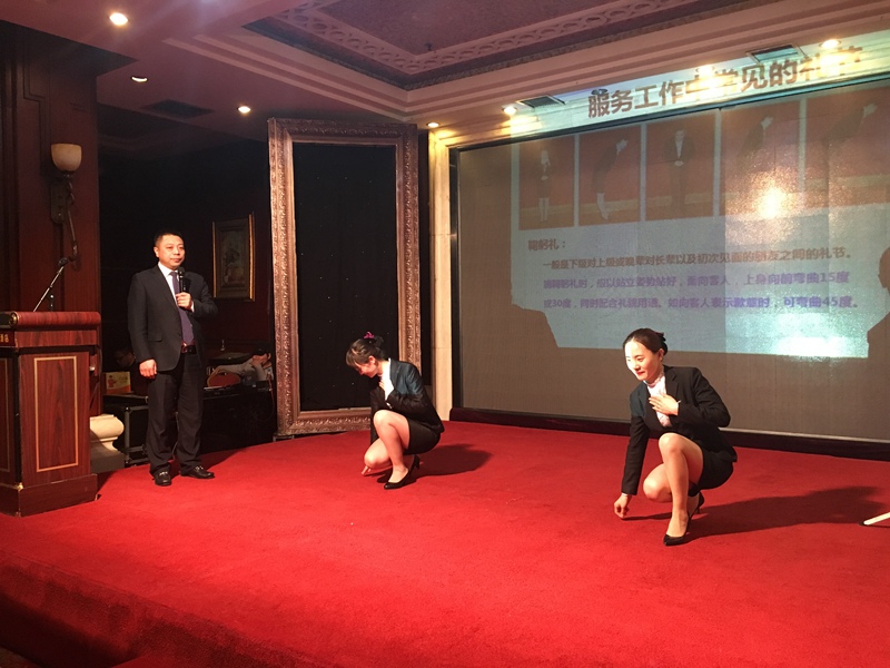 商務(wù)禮儀,通常指的是禮儀在商務(wù)行業(yè)之內(nèi)的具體運用,主要泛指商務(wù)人員在自己的工作崗位上所應(yīng)當(dāng)嚴格遵守的行為規(guī)范。學(xué)習(xí)商務(wù)禮儀除了有利于規(guī)范行為外,還有利于傳遞信息、增進感情,以及樹立形象,是個人和企業(yè)發(fā)展不可或缺的重要素質(zhì)。此次培訓(xùn),馮總從儀表著裝、交往舉止、溝通禮儀、電話禮儀、會議禮儀等方面入手,不僅詳細講解了職場服裝、發(fā)飾、領(lǐng)帶、著裝搭配以及基本的商務(wù)禮儀規(guī)范,同時還與酒店的兩位工作人員共同現(xiàn)場演示了商務(wù)活動中的站、坐、走、拾物等基本規(guī)范要領(lǐng),以及服務(wù)人員接待客人時的問好、致歉、指引等動作標準,使大家能夠更直觀、準確的掌握基本商務(wù)禮儀。此外,馮總還結(jié)合自身多年酒店工作經(jīng)驗和外出學(xué)習(xí)經(jīng)驗,以視頻、案例、情景模擬等方式,將實際工作中會出現(xiàn)的問題及行為標準進行了生動展示,有效提高了窗口單位人員的綜合素質(zhì)。