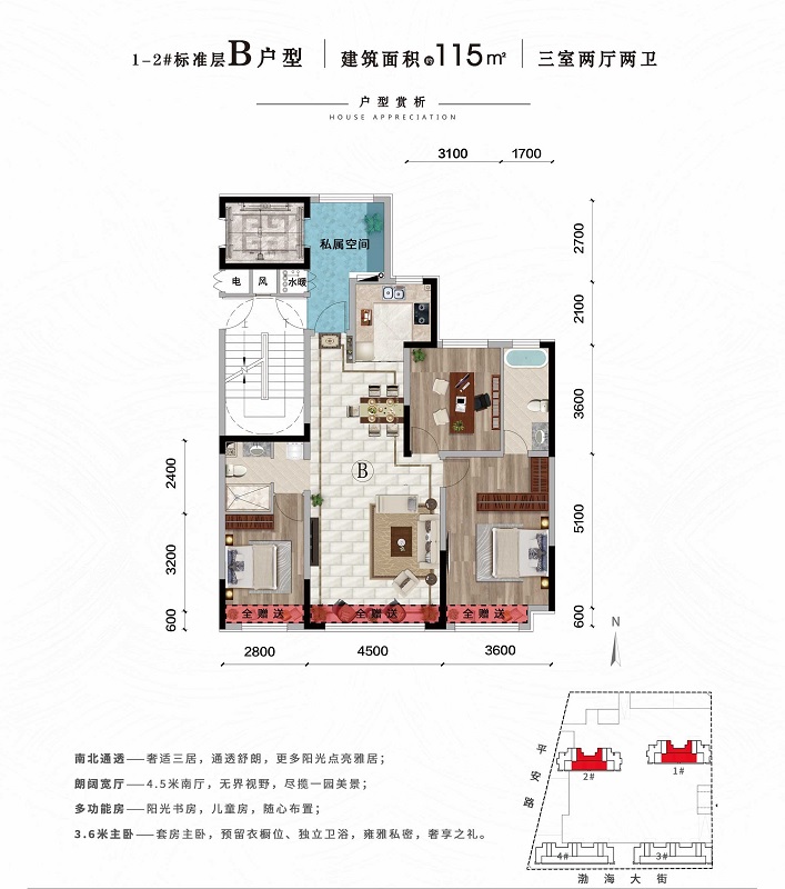 中天御品項(xiàng)目位于營(yíng)口市渤海大街與平安路交會(huì)處,地處西市區(qū)核心位置,營(yíng)口主城區(qū)的交通要道,地理位置十分優(yōu)越。行政配套遍布項(xiàng)目周邊,商業(yè)配套齊全滿足您日常購(gòu)物所需。 項(xiàng)目占地面積1.6萬(wàn)㎡,建筑面積3.7萬(wàn) ㎡,整體由4棟17層新中式雅居小高層組成,配有商鋪及車(chē)庫(kù)/車(chē)位,完全人車(chē)分流設(shè)計(jì)。 戶(hù)型種類(lèi)齊全,面積區(qū)間從88平到118平,從兩室兩廳一衛(wèi)到三室兩廳兩衛(wèi)。全部戶(hù)型均為南北通透的五明戶(hù)型設(shè)計(jì)。