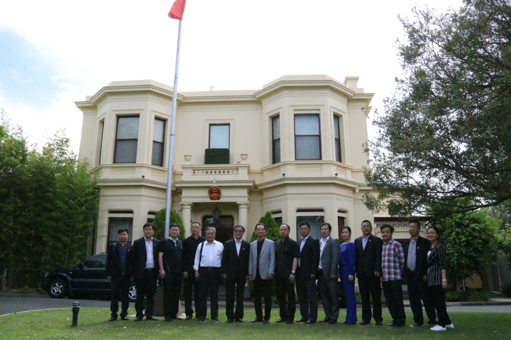 圖為于洪濤副總同企業(yè)家們與墨爾本領(lǐng)事在館前合影留念