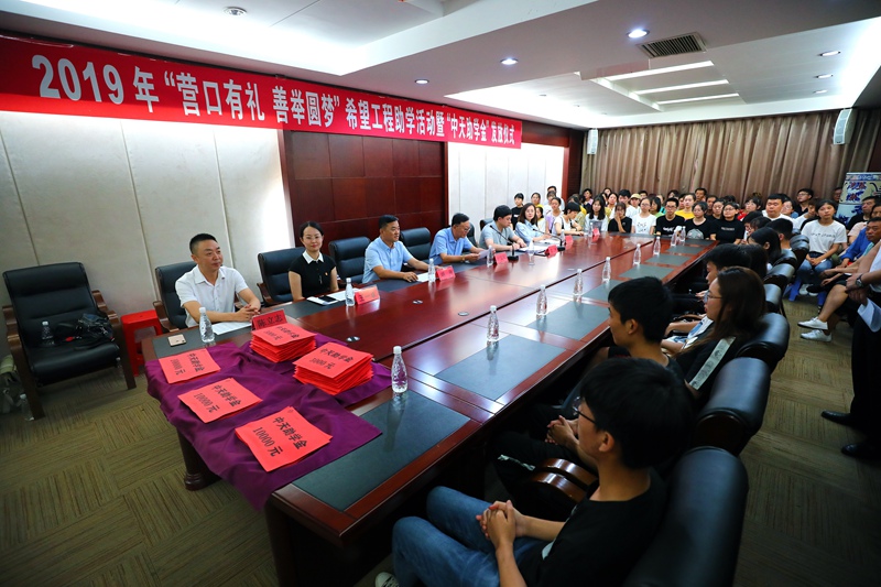 8月20日下午,2019年“營口有禮 善舉圓夢(mèng)”希望工程助學(xué)活動(dòng)暨“中天助學(xué)金”發(fā)放儀式在中天集團(tuán)總部會(huì)議室舉行。