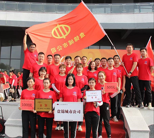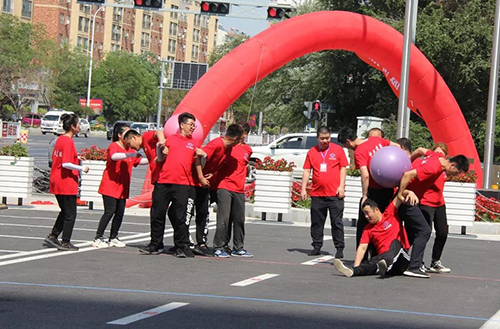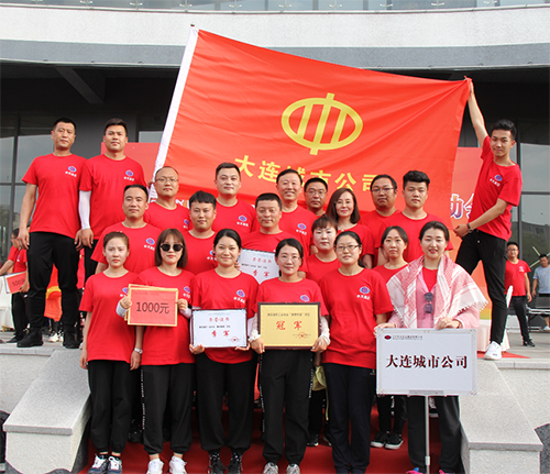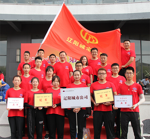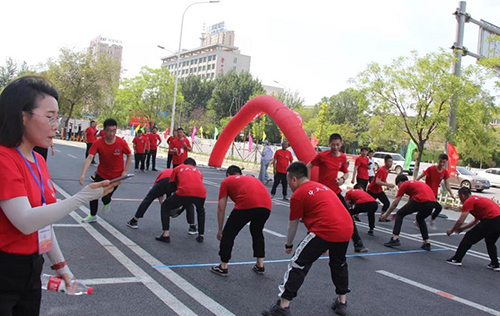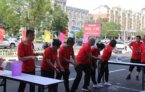 “團(tuán)結(jié)背靠背”每隊(duì)6人,平均分成2組,隊(duì)員手拉手組成一個(gè)閉環(huán),用后背運(yùn)球接力。這個(gè)項(xiàng)目的難點(diǎn)在于如何在快速前進(jìn)中保證球的穩(wěn)定,不讓球落地耽誤時(shí)間。比賽中遼陽(yáng)公司速度飛快,以絕對(duì)的優(yōu)勢(shì)取得比賽冠軍,物業(yè)公司和盤(pán)錦公司緊隨其后,取得二、三名。