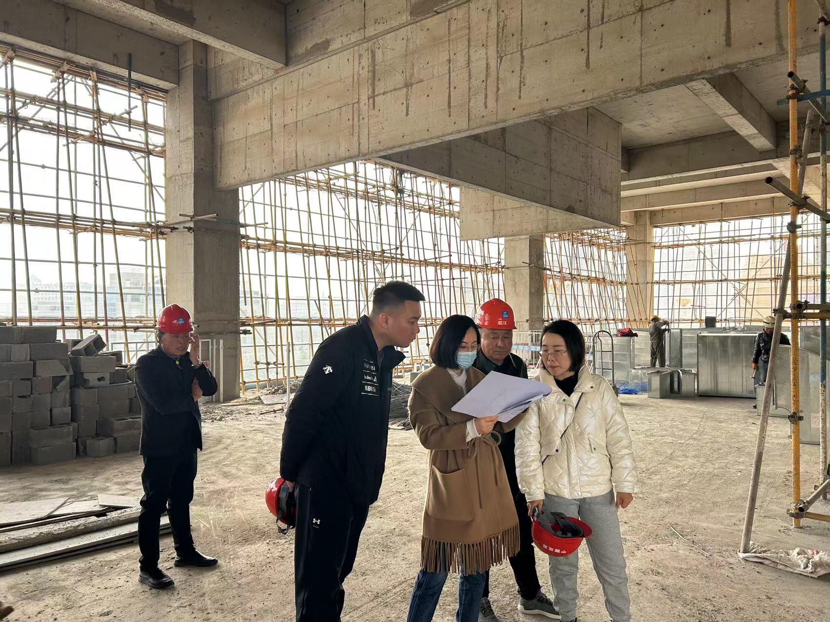 總裁一行首先到達B1#樓首層,并逐層向上巡視。視察中,總裁對B1#樓酒店大堂及一層宴會廳提出優(yōu)化建議,保持現(xiàn)有砌筑墻體不做拆改,擴大了酒店大堂面積。在B1#樓2層總裁提出移動宴會廳隔墻并移動室外消防梯,在保證使用功能前提下盡量擴大宴會廳面積;對酒店客房門口及衛(wèi)生間提出優(yōu)化建議,有效節(jié)約了成本;對酒店綜合管道布置及4層北側空調機組擺放下達了優(yōu)化改進任務等。