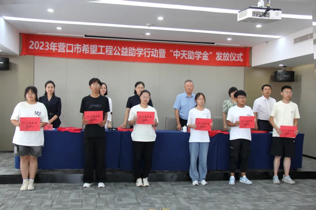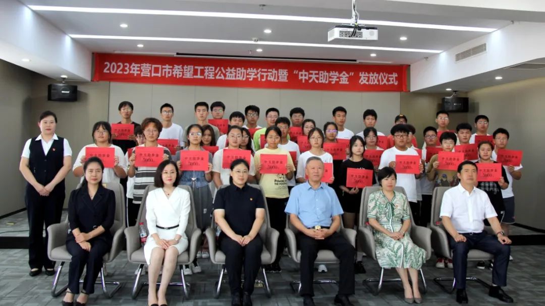 8月18日下午,2023年營口市希望工程公益助學活動暨“中天助學金”發(fā)放儀式在中天集團總部會議室舉行。營口市團市委書記白潔,中天企業(yè)集團董事長于寶權、總裁于洪波,營口市團市委副書記梁嫚,營口市委教育工作委員會專職委員邰穎,營口市慈善總會常務副會長黃渤以及獲得資助的34名學生,出席了本次發(fā)放儀式。來自遼寧省實驗營口分校、遼寧省實驗遼東灣分校、營口市高級中學、營口市第三高級中學、大石橋市高級中學、大石橋市第二高級中學、蓋州第一高級中學、熊岳高級中學、營口開發(fā)區(qū)高級中學、營口開發(fā)區(qū)第二高級中學等十所學校的34名貧困學生,每人獲得5000元資助。