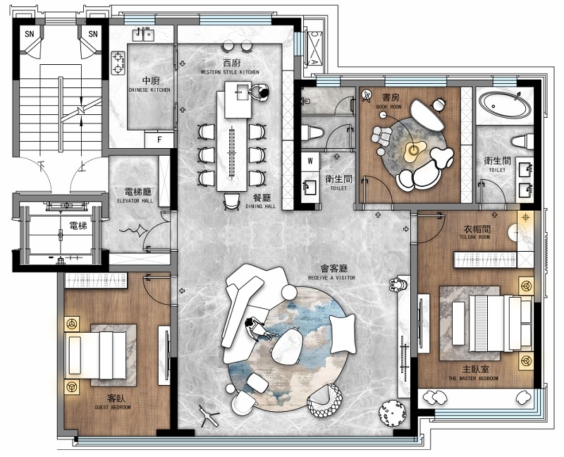 此戶型落地于營(yíng)口,對(duì)于東北的四線城市來說,客戶更在乎房間的尺度,更喜歡“敞亮”的房子而不是干擾視線的小洄游空間,并且思維比較傳統(tǒng),不習(xí)慣北側(cè)入戶。根據(jù)項(xiàng)目所處地域以及周邊環(huán)境,結(jié)合目標(biāo)人群的生活習(xí)慣,綜合考慮家庭全生命周期需求和后疫情時(shí)代人居生活的變化,圍繞寬廳、獨(dú)立電梯入戶、全明戶型、全幕立面等設(shè)計(jì)理念,打造出143平全產(chǎn)品類型的品質(zhì)好戶型,滿足居住者的全周期居住需求。