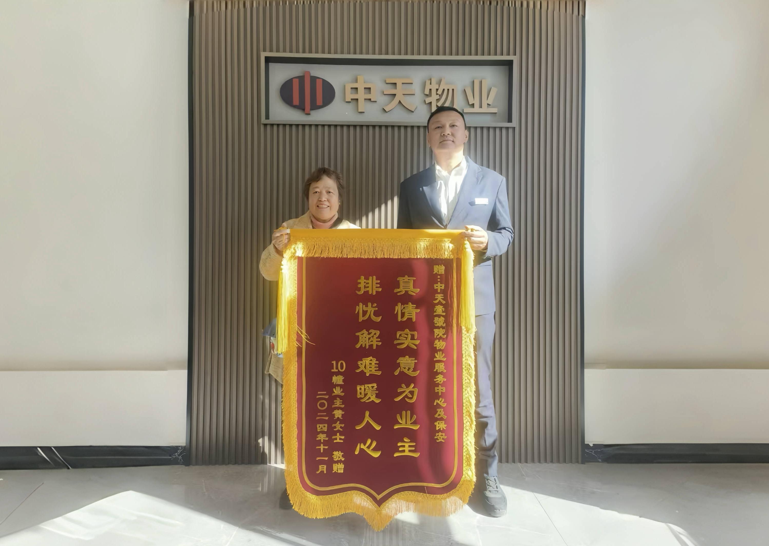 11月5日下午,10號樓業(yè)主給壹號院物業(yè)服務中心送上“真情實意為業(yè)主 排憂解難暖人心”的錦旗并向拾金不昧的物業(yè)秩序部的員工致謝。據(jù)了解,原來是一天前曾在小區(qū)發(fā)生了一件“秩序員拾金不昧,手機歸還失主”的好人好事,為了表示感謝員工這種拾金不昧的精神,業(yè)主親自將錦旗送到壹號院物業(yè)服務中心致謝。