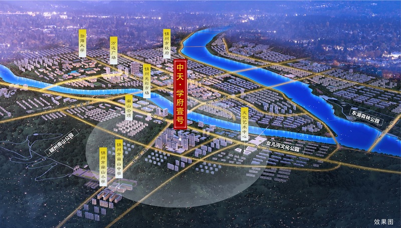 項目依山傍水,位于錦州城市東側,北朝女兒河,南臨南山公園,距離萬達廣場、市府廣場、實驗學校、東湖森林公園等生活商業(yè)配套3公里左右,項目周圍生態(tài)良好、生活安靜,是未來錦州置業(yè)的優(yōu)選地段。項目通過西側主入口步入式大堂進入小區(qū),高層建筑樓間距較大,有利于形成較為集中的景觀節(jié)點。地塊南臨二級道路,沿街配有商業(yè),適合形成具有體驗感的商業(yè)景觀。