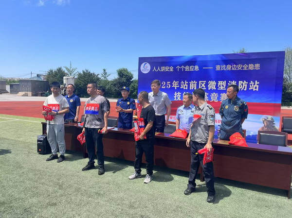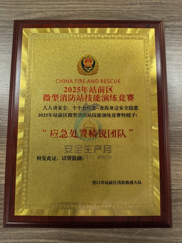 競賽緊扣實戰(zhàn)需求,設(shè)置水槍水帶連接賽、傷員擔架救援賽、防護裝備穿戴賽、滅火器識別選擇賽、消防知識挑戰(zhàn)賽等五個比賽項目,全面檢驗選手的體能、技能和團隊協(xié)作能力,充分展現(xiàn)現(xiàn)代化救援技術(shù)。中天物業(yè)最終獲得由站前區(qū)消防救援大隊頒發(fā)的二等獎“應(yīng)急處置精銳團隊”牌匾。