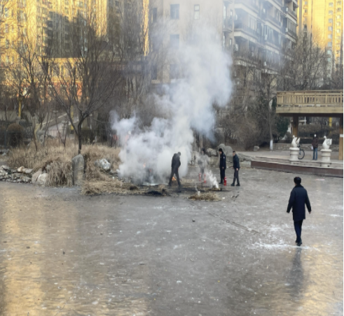 這是一個(gè)不平凡的周末,12月21日下午園區(qū)里傳來的孩子們的笑聲和玩耍的歡樂,在寒冷的冬天里整個(gè)園區(qū)都充滿的溫馨的笑語。就在下午15點(diǎn)左右一股濃煙打破了這片歡笑聲。就在園區(qū)湖面上的草叢堆突發(fā)火情,火勢伴隨著陣風(fēng)迅速蔓延,濃煙漸起,情況十分緊急。