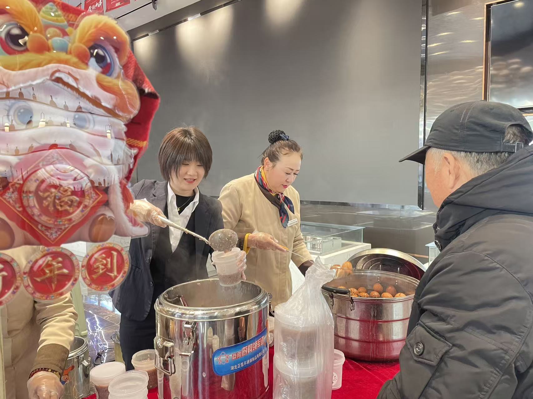 活動(dòng)籌備階段,物業(yè)團(tuán)隊(duì)精心挑選食材,精選糯米、紅豆、紅棗、桂圓、蓮子等十余種雜糧干果,提前一天連夜熬煮。物業(yè)工作人員也提前布置了活動(dòng)現(xiàn)場(chǎng),紅燈籠、中國(guó)結(jié)點(diǎn)綴其間,營(yíng)造出濃厚的節(jié)日氛圍,還貼心準(zhǔn)備了保溫桶、一次性碗筷及打包盒,方便業(yè)主現(xiàn)場(chǎng)品嘗或帶回家分享。清晨七點(diǎn),物業(yè)工作人員便開(kāi)始忙碌,慢火細(xì)燉數(shù)小時(shí),確保每一碗臘八粥都軟糯香甜、營(yíng)養(yǎng)醇厚。上午九點(diǎn),活動(dòng)正式開(kāi)始。業(yè)主們陸續(xù)來(lái)到現(xiàn)場(chǎng),有序排隊(duì)領(lǐng)取臘八粥與茶葉蛋,工作人員熱情地為大家盛粥,一句句“臘八快樂(lè)”“注意保暖”的問(wèn)候,讓寒冷的冬日充滿暖意。業(yè)主們捧著溫?zé)岬闹嗤?,臉上洋溢著幸福的笑容。此外,物業(yè)還為行動(dòng)不便的獨(dú)居老人、高齡業(yè)主提供上門送粥服務(wù)。